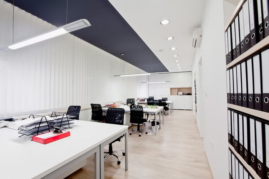 A modern, clean, and highly functional office transformation designed to support productivity and professionalism.
